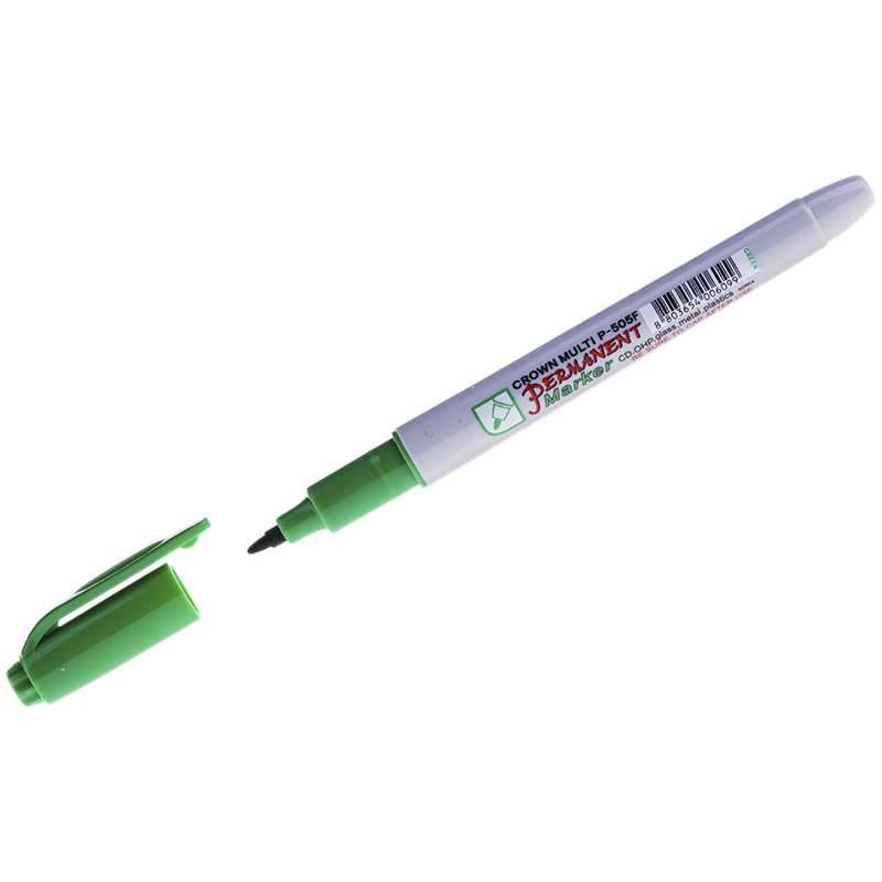 Перманентный маркер. Чернила на спиртовой основе, цвет - зеленый. Пишущий узел - 1 мм. Эргономичный изящный корпус. Круглый наконечник из высококачественного фиброволокна.Маркер перманентный Crown "Multi Marker Super Slim" зеленый, пулевидный, 1мм