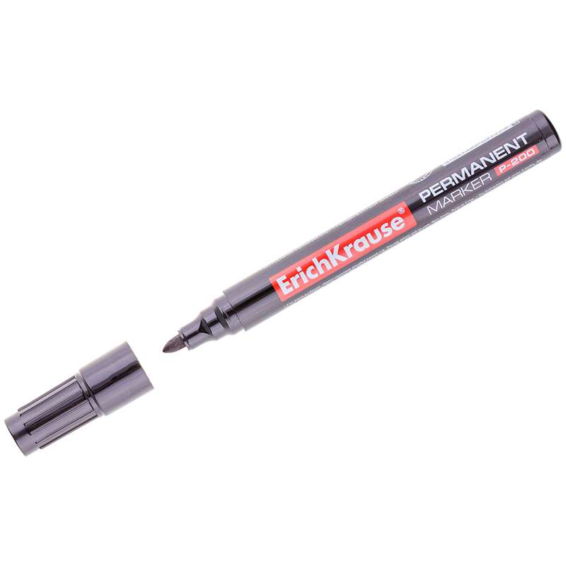 Подходит для письма на любых поверхностях. После нанесения быстро высыхают и не стираются. Чернила на спиртовой основе. Плотный колпачок с клипом надежно предотвращает высыханиеМаркер перманентный Erich Krause "P-200" черный, пулевидный, 2,2мм