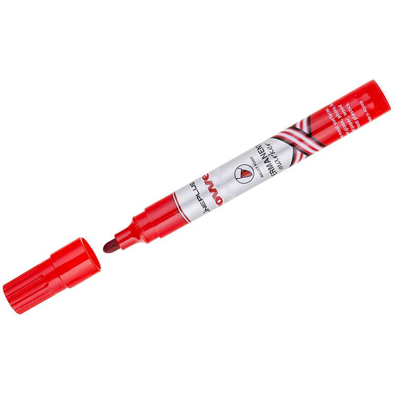Перманентный маркер на спиртовой основе без ксилола с толстым пишущим узлом. Пишет на бумаге, стекле, дереве, металле, пластике и других поверхностяхМаркер перманентный Line Plus "2400B" красный, пулевидный, 2мм