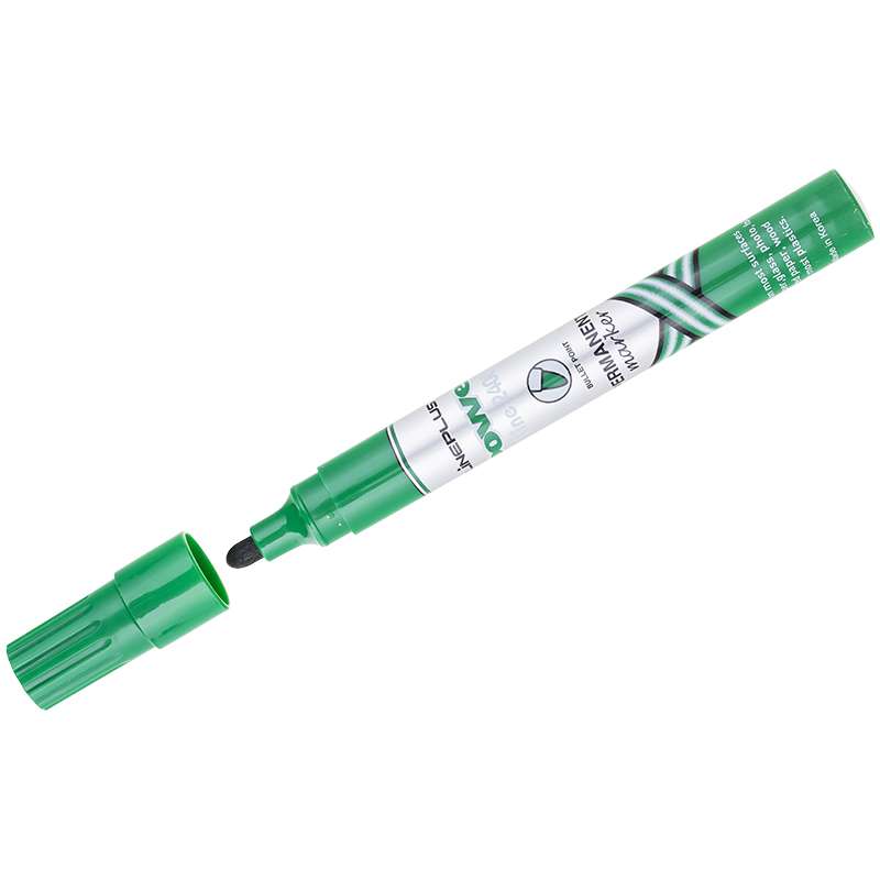 Перманентный маркер на спиртовой основе без ксилола с толстым пишущим узлом. Пишет на бумаге, стекле, дереве, металле, пластике и других поверхностяхМаркер перманентный Line Plus "2400B" зеленый, пулевидный, 2мм