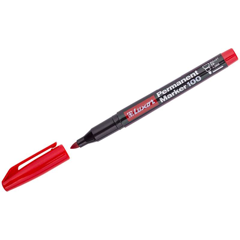 Маркер перманентный Luxor "100" красный, пулевидный, 1-2мм