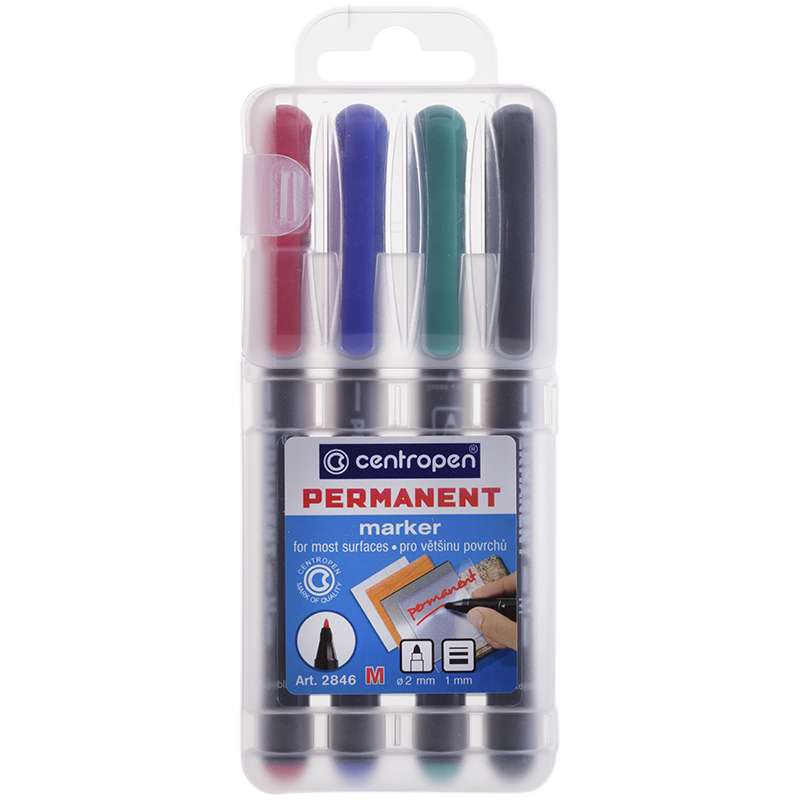 Главная / Товары / КАНЦТОВАРЫ / УПАКОВКА / ХОЗ ТОВАРЫ / РАСХОДНЫЕ МАТЕРИАЛЫ / Канцелярские товары - Офисные / Письменные и чертежные принадлежности / Маркеры и текстовыделители / Маркеры перманентные / Набор перманентных маркеров Centropen "2846" 4цв., пулевидный, 1мм, пластик. уп., европодвес