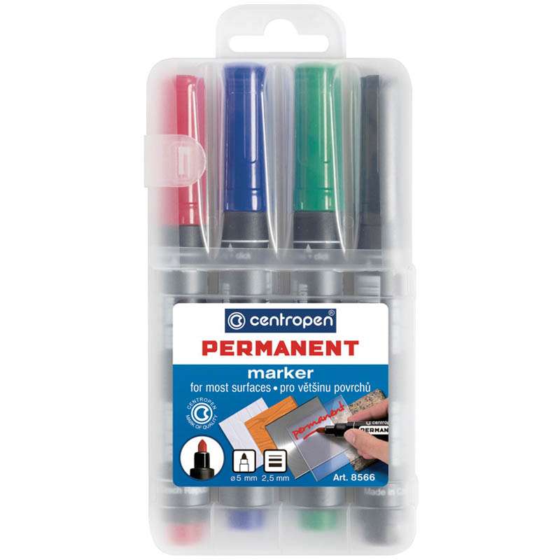Главная / Товары / КАНЦТОВАРЫ / УПАКОВКА / ХОЗ ТОВАРЫ / РАСХОДНЫЕ МАТЕРИАЛЫ / Канцелярские товары - Офисные / Письменные и чертежные принадлежности / Маркеры и текстовыделители / Маркеры перманентные / Набор перманентных маркеров Centropen "8566" 4цв., пулевидный, 2,5мм, пластик. уп., европодвес