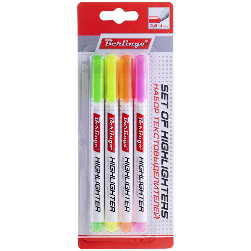 Главная / Товары / КАНЦТОВАРЫ / УПАКОВКА / ХОЗ ТОВАРЫ / РАСХОДНЫЕ МАТЕРИАЛЫ / Канцелярские товары - Офисные / Письменные и чертежные принадлежности / Маркеры и текстовыделители / Текстовыделители / Набор текстовыделителей Berlingo "Slim" 4цв., 0,5-4мм, европодвес