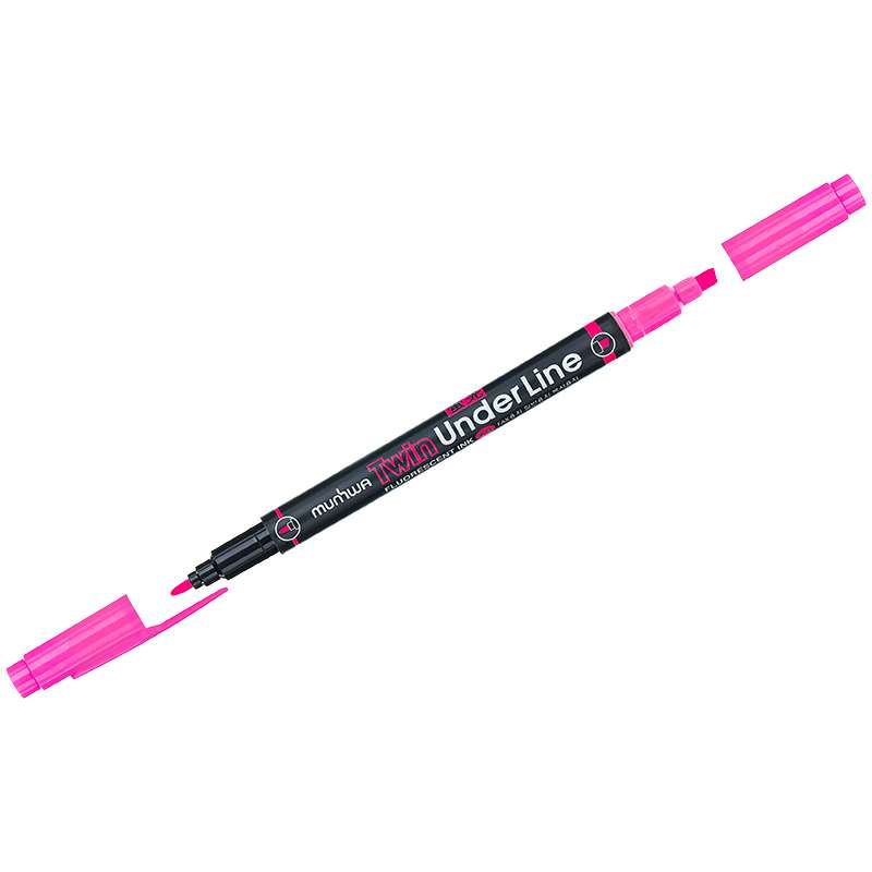 Двухсторонний текстовыделитель в круглом корпусе. Цвет колпачков соответсвует цвету чернил. Два наконечника: скошенный для выделения текста и пулевидный для подчеркивания необходимой информацииТекстовыделитель двухсторонний "Twin UnderLine", розовый, 4/0,5мм