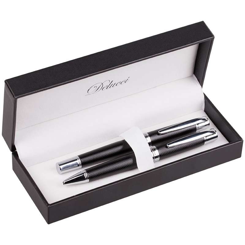 Главная / Товары / КАНЦТОВАРЫ / УПАКОВКА / ХОЗ ТОВАРЫ / РАСХОДНЫЕ МАТЕРИАЛЫ / Канцелярские товары - Офисные / Письменные и чертежные принадлежности / Подарочные письменные принадлежности / Наборы подарочных письменных принадлежностей / Набор Delucci (шариковая ручка+роллер), черные, корпус черный/хром, подар. уп.