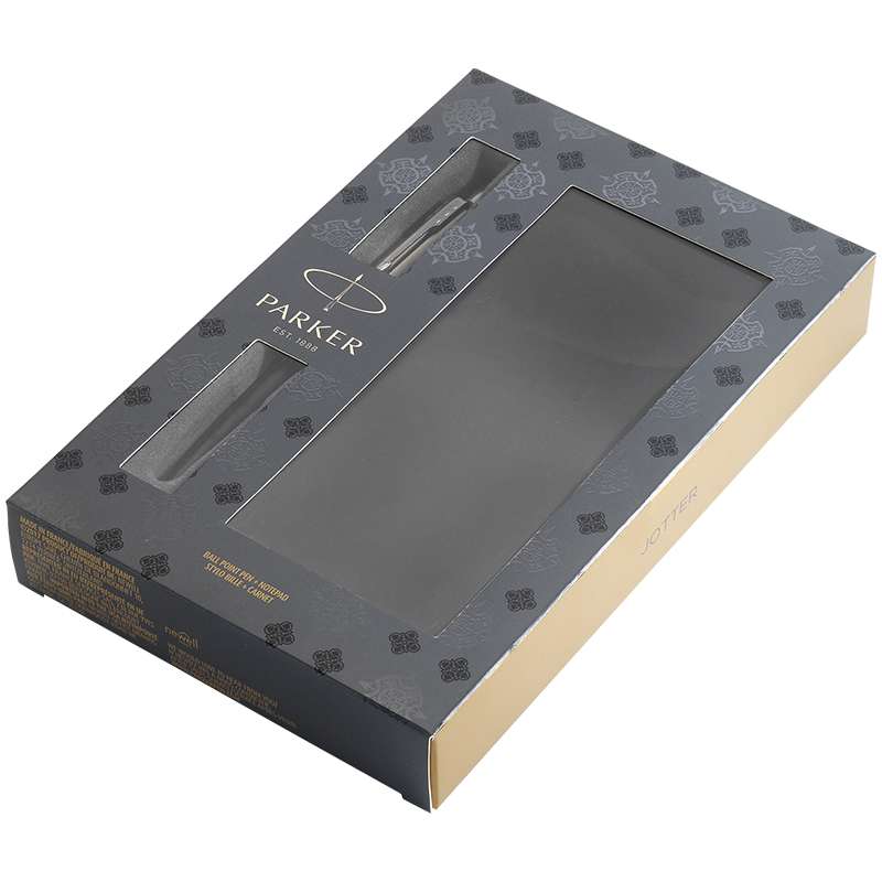 Подарочный набор: шариковая ручка Jotter Bond Street Black CT в тонком корпусе из полированной нержавеющей стали черного цвета с деталями цвета хром и записная книжкаНабор Parker: ручка шариковая "Jotter Bond Street Black CT", 1,0мм и записная книжка, подар. уп.