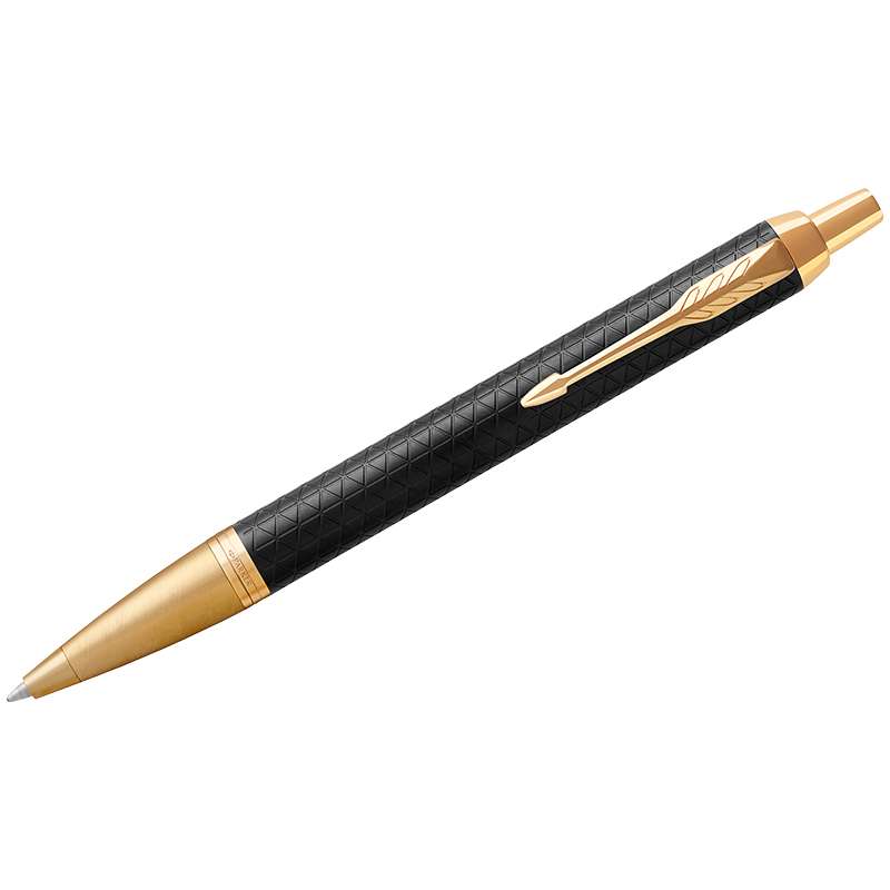 Шариковая ручка в корпусе из матового анодированного алюминия, прошедшего пескоструйную обработку, с фирменным гравированным рисунком. Позолоченная отделка деталей с полировкойРучка шариковая "IM Premium Black/Gold GT" синяя, 1,0мм, кнопочный механизм, подар.уп.