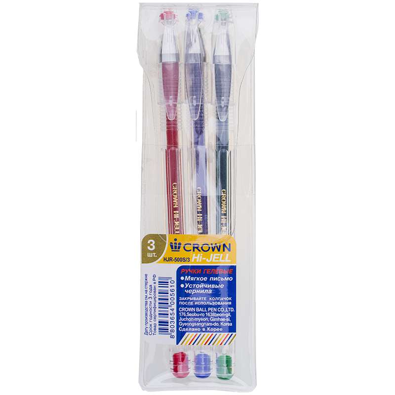Главная / Товары / КАНЦТОВАРЫ / УПАКОВКА / ХОЗ ТОВАРЫ / РАСХОДНЫЕ МАТЕРИАЛЫ / Канцелярские товары - Офисные / Письменные и чертежные принадлежности / Ручки / Ручки гелевые / Набор гелевых ручек Crown "Hi-Jell" 3шт., 3цв., 0,5мм, ПВХ уп., европодвес