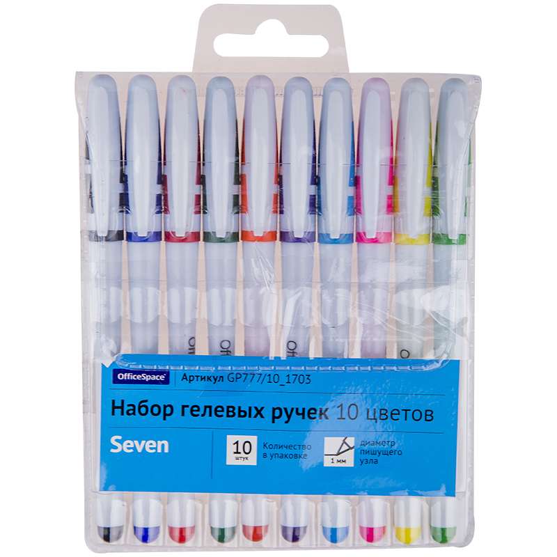 Главная / Товары / КАНЦТОВАРЫ / УПАКОВКА / ХОЗ ТОВАРЫ / РАСХОДНЫЕ МАТЕРИАЛЫ / Канцелярские товары - Офисные / Письменные и чертежные принадлежности / Ручки / Ручки гелевые / Набор гелевых ручек OfficeSpace 10цв., белый корпус, 1,0мм, европодвес