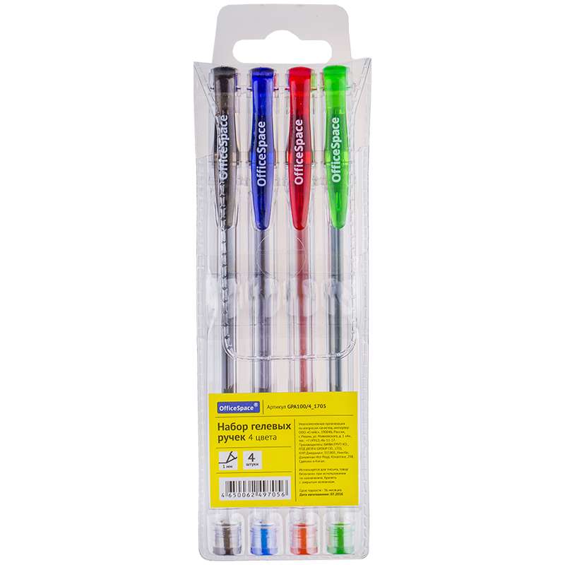 Набор гелевых ручек OfficeSpace 4цв., 1мм, европодвес