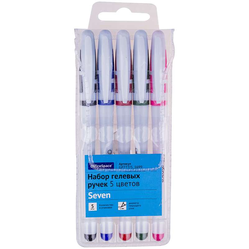 Набор гелевых ручек OfficeSpace 5цв., белый корпус, 1мм, европодвес