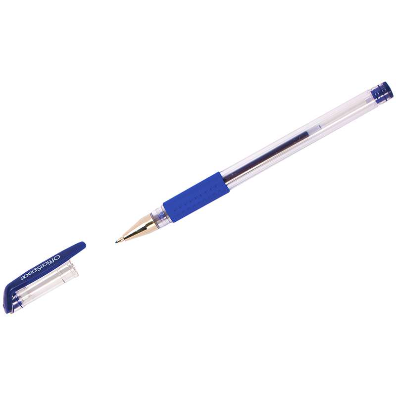 Гелевая ручка с колпачком, пластиковый корпус, резиновый грип, синие чернила, пищущий узел 0,6 мм..Ручка гелевая OfficeSpace синяя, 0,6мм, грип