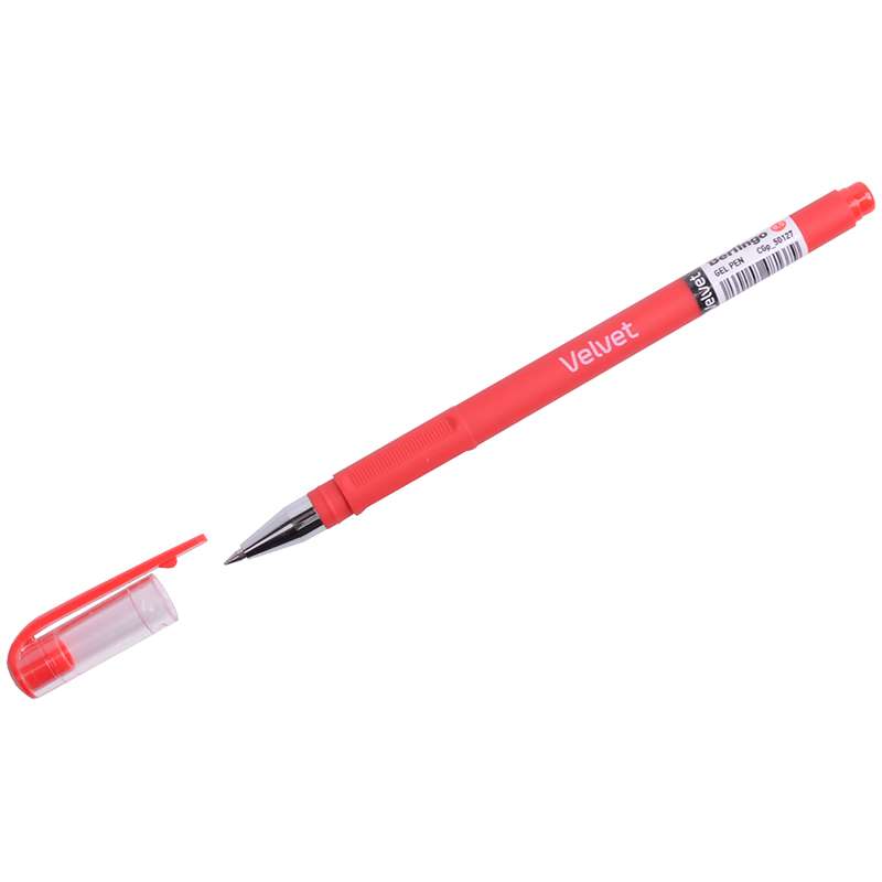 Ручка гелевая Velvet с колпачком и клипом. Круглый корпус с покрытием SOFT TOUCH. Приятное бархатистое покрытие корпуса создает дополнительный комфорт при письме. Трёхгранная зона захвата. Рифление в зоне захвата препятствует скольжению пальцев при письме. Обеспечивает чёткое и ровное письмо. Диаметр пишущего узла - 0,5 мм. Упаковка в картонную коробку по 12 шт.Ручка гелевая "Velvet" красная, 0,5мм, прорезиненый корпус