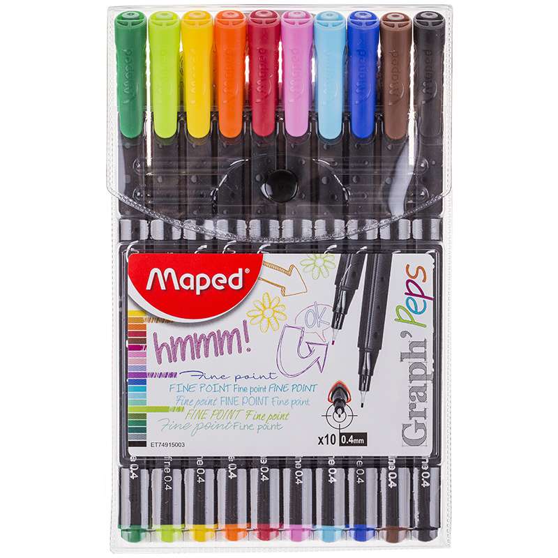 Главная / Товары / КАНЦТОВАРЫ / УПАКОВКА / ХОЗ ТОВАРЫ / РАСХОДНЫЕ МАТЕРИАЛЫ / Канцелярские товары - Офисные / Письменные и чертежные принадлежности / Ручки / Ручки капиллярные, линеры, рапидографы / Набор капиллярных ручек Maped "Graph Pep's" 10цв., 0,4мм, европодвес