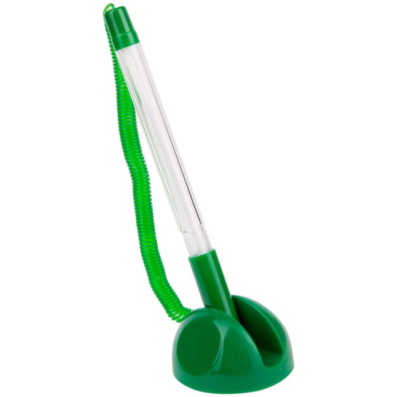 Настольная шариковая ручка на подставке. Подставка с регулируемым углом наклона ручки для более удобного использования. Подставка фиксируется на ровной поверхности с помощью клейкого основания. Идеально подходит для мест с высокой проходимостью: стойки регистрации, банки, ресепшен и др. Упакована в индивидуальный пакет с европодвесом.Ручка шариковая настольная OfficeSpace "Reception" синяя, 0,7мм, зеленый корпус