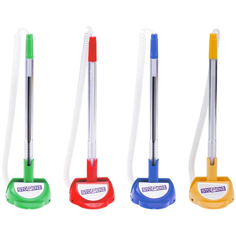 Шариковая ручка на фиксируемой подставке. Цвет подставки совпадает с цветом колпачка. Имеет удобный держатель. Подобная модель идеально для peception-places, регистратур, банков, касс и других мест с высокой посещаемостьюРучка шариковая настольная "Stop Pen", синяя, 0,7мм, корпус ассорти