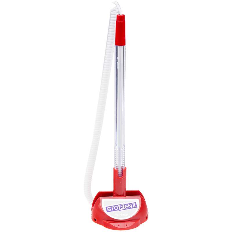 Шариковая ручка на фиксируемой подставке. Цвет подставки совпадает с цветом колпачка. Имеет удобный держатель. Подобная модель идеально для peception-places, регистратур, банков, касс и других мест с высокой посещаемостьюРучка шариковая настольная "Stop Pen", синяя, 0,7мм, красный корпус