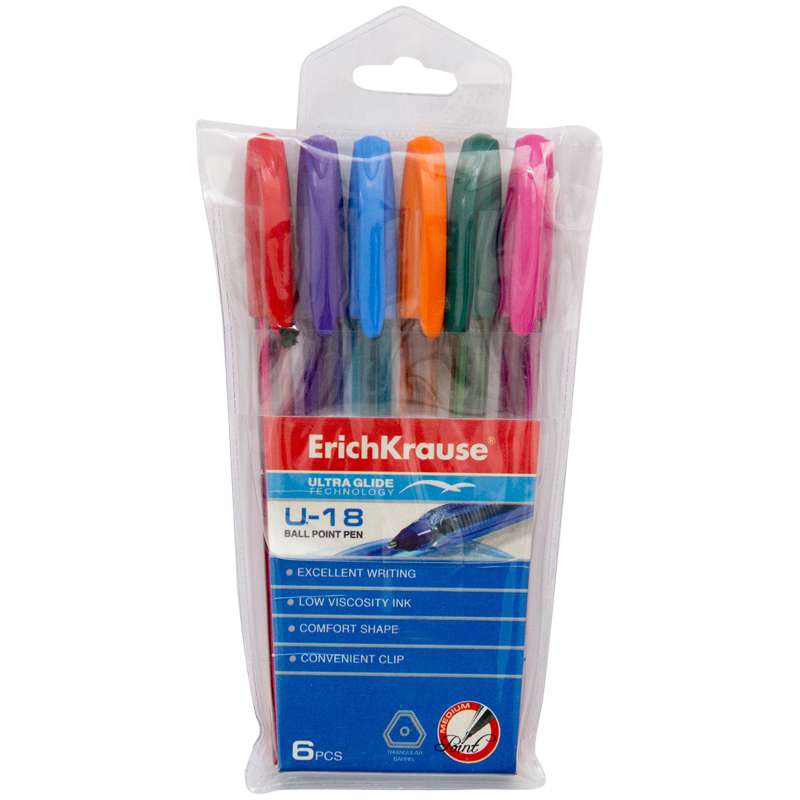 Набор трехгранных шариковых ручек с игольчатым типом пишущего узла и уникальной технологией Ultra Glide. В наборе шесть ручек с чернилами шести цветов: голубого, розового, зеленого, красного, оранжевого и фиолетового цветаНабор шариковых ручек Erich Krause "Ultra Glide Technology U-18", 6шт., 6цв., ассорти, 1,0мм, пакет