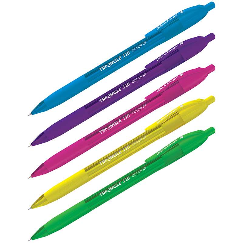 Технология Smart Ink обеспечиваeт супермягкое письмо. Кнопочная подача стержня. Удобный корпус трёхгранной формы. Резиновый грип, мягкая зона захвата. Цвет корпуса - ассорти. Диаметр пишущего узла - 0,7 мм. Цвет чернил - синий. Упаковка - картонная коробка по 12 шт.Ручка шариковая автоматическая "Triangle 110 RT Color" синяя, 0,7мм, трехгран., игольчатый стержень