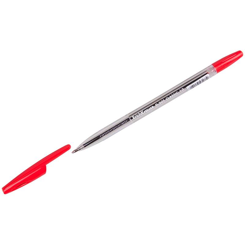 Шариковая ручка в прозрачном корпусе. Цвет вентилируемого колпачка соответствует цвету чернилРучка шариковая Erich Krause "R-301 Classic" красная, 1,0мм, штрихкод