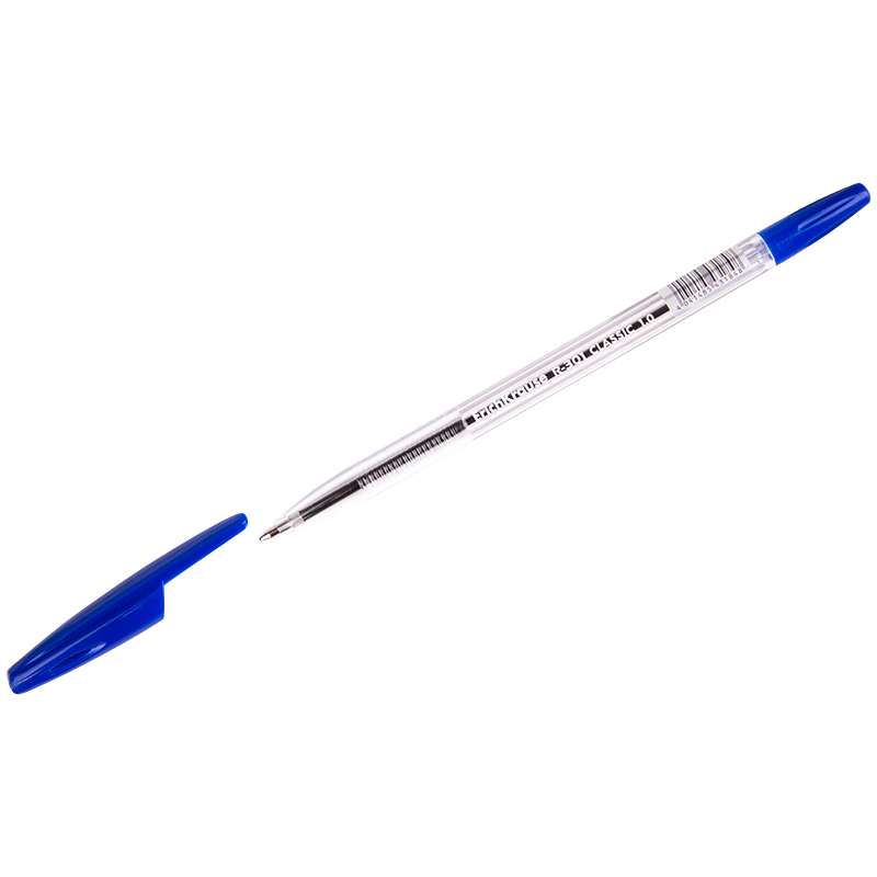 Шариковая ручка в прозрачном корпусе. Цвет вентилируемого колпачка соответствует цвету чернилРучка шариковая Erich Krause "R-301 Classic" синяя, 1,0мм, штрихкод