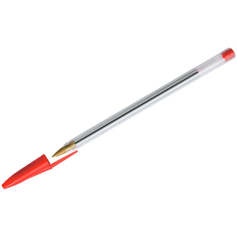 Шариковая ручка с красными чернилами. Толщина линии - 0,5 мм. Корпус ручки - прозрачный пластик.Ручка шариковая OfficeSpace красная, 0,7мм