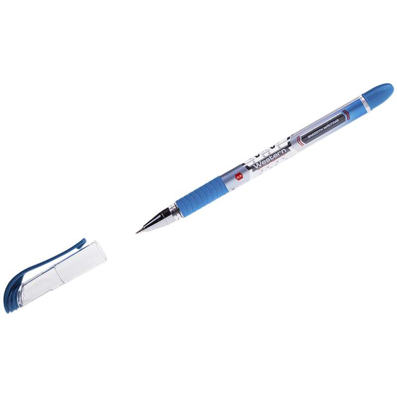 Ручка шариковая с непрозрачным корпусом и пластиковым клипом. Мягкий резиновый грип препятствует скольжению пальцев и обеспечивает комфортное письмо. Диаметр пишущего узла - 0,5 мм. Чернила пониженной вязкости обеспечивают мягкое письмо. Упаковка в картонную коробку по 12 шт.Ручка шариковая "Western", синяя, 0,5мм, грип