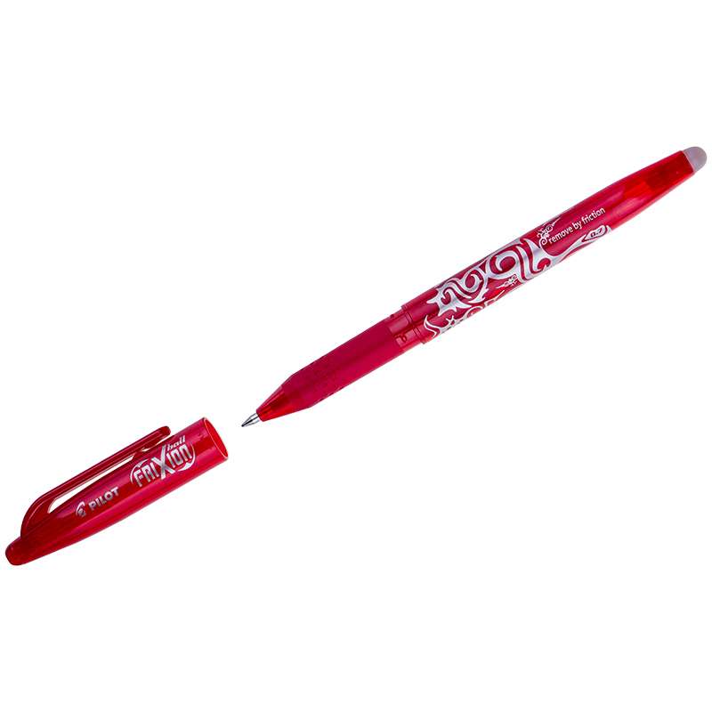 Шариковая ручка. Корпус из непрозрачного тонированного в цвет чернил пластика. Чернила легко удаляются с бумаги специальным ластиком, встроенным в корпус ручки. Под действием трения при повышении температуры чернила стираются.Ручка гелевая стираемая "Frixion" красная, 0,7мм