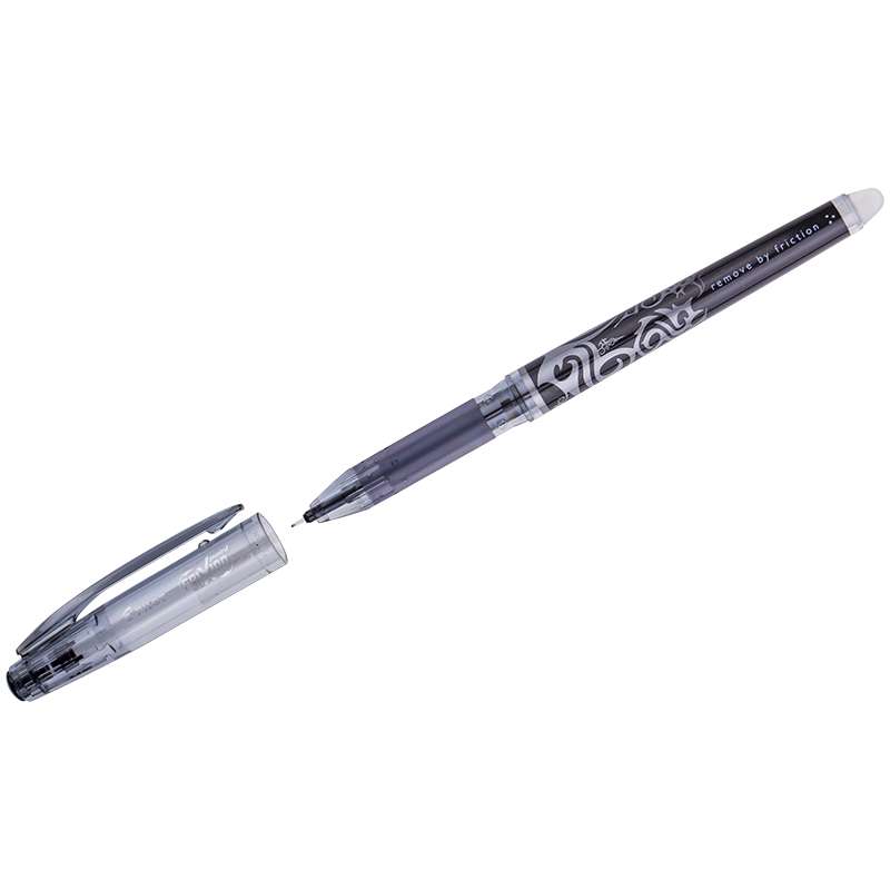 Шариковая ручка. Корпус из непрозрачного тонированного в цвет чернил пластика. Чернила легко удаляются с бумаги специальным ластиком, встроенным в корпус ручки. Под действием трения при повышении температуры чернила стираются.Ручка гелевая стираемая "Frixion Point" черная, 0,5мм