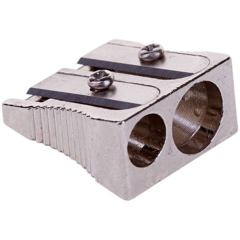 Цинковая точилка эргономичной формы. Имеет лезвие из высококачественной стали для безупречной заточки. Упаковка в картонный пенал - по 24 шт.Точилка металлическая Berlingo, 2 отверстия