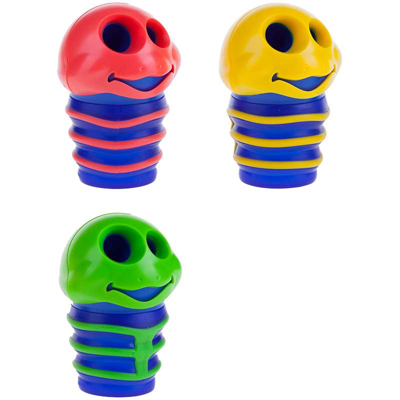 Точилка оригинального дизайна с двумя отверстиями для карандашей разного диаметра. Яркие цвета ассорти: розовый, оранжевый, синий, зеленый, сиреневыйТочилка пластиковая Maped "Croc Croc", 2 отверстия, контейнер, ассорти