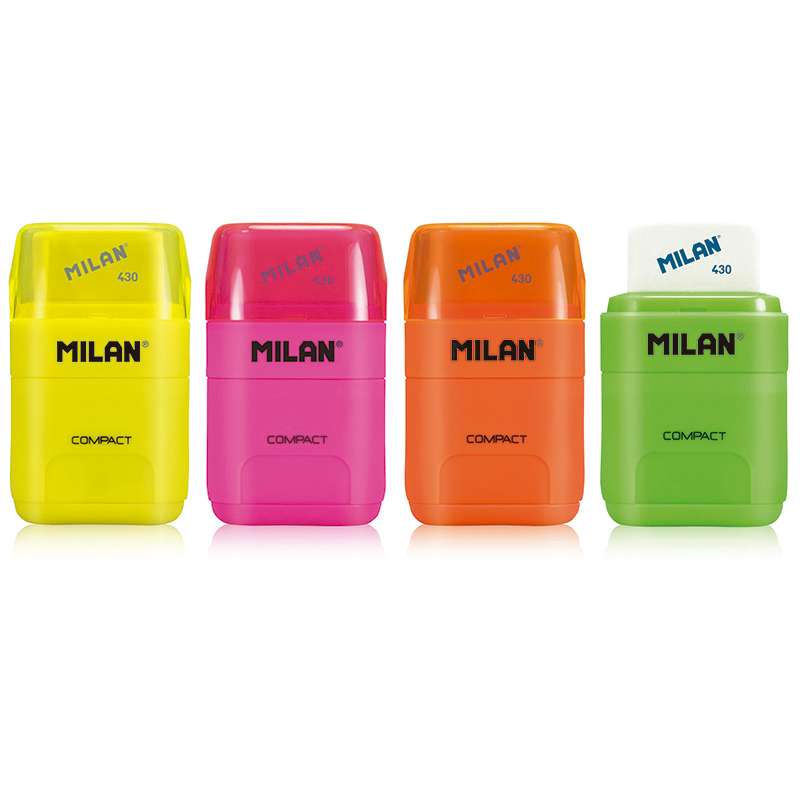 Главная / Товары / КАНЦТОВАРЫ / УПАКОВКА / ХОЗ ТОВАРЫ / РАСХОДНЫЕ МАТЕРИАЛЫ / Канцелярские товары - Офисные / Письменные и чертежные принадлежности / Точилки / Точилки ручные / Точилка пластиковая с ластиком Milan "Compact Fluo", 2 отверстия, контейнер, ассорти