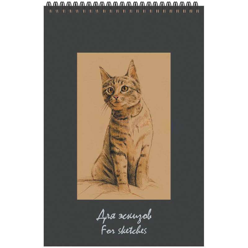 Блокнот на пружине для эскизов и набросков сделан с окошком на лицевой стороне обложки. Подходит для рисунка карандашом, углем, пастелью и сангиной.Блокнот для эскизов 50л. А5 на пружине "Котенок", 75 гр/м2, бумага крафт