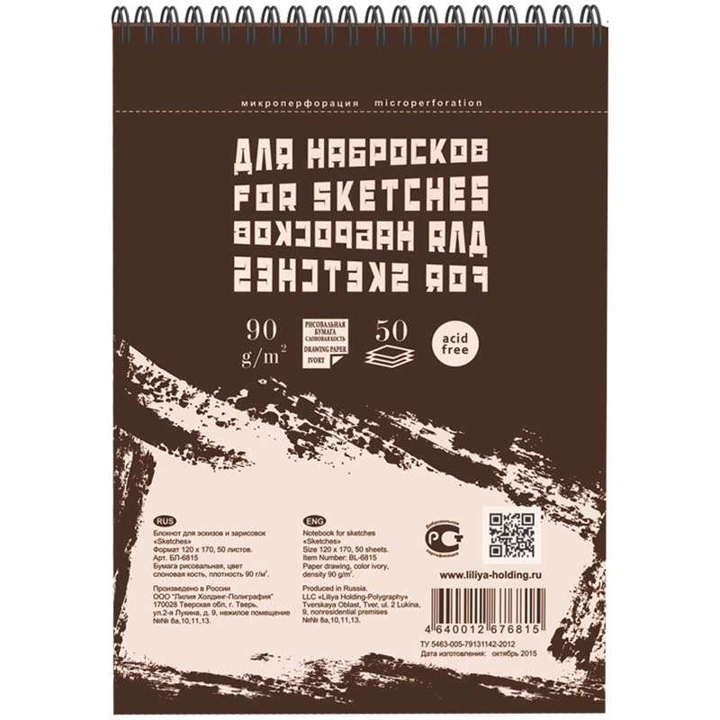 Блокнот для набросков, эскизов, зарисовок в различных видах техники рисования: карандашом, сангиной, соусом, углем, пастелью и тушью. Состоит из рисовальной бумаги (не офсет!!!) цвета слоновой кости, плотностью 90г/м2, пружина сверху и имеет основание из жесткого картона для удобства рисования.Блокнот для эскизов и зарисовок 50л. 120*170 мм пружина сверху "Sketches", 90гр/м2, слоновая кость