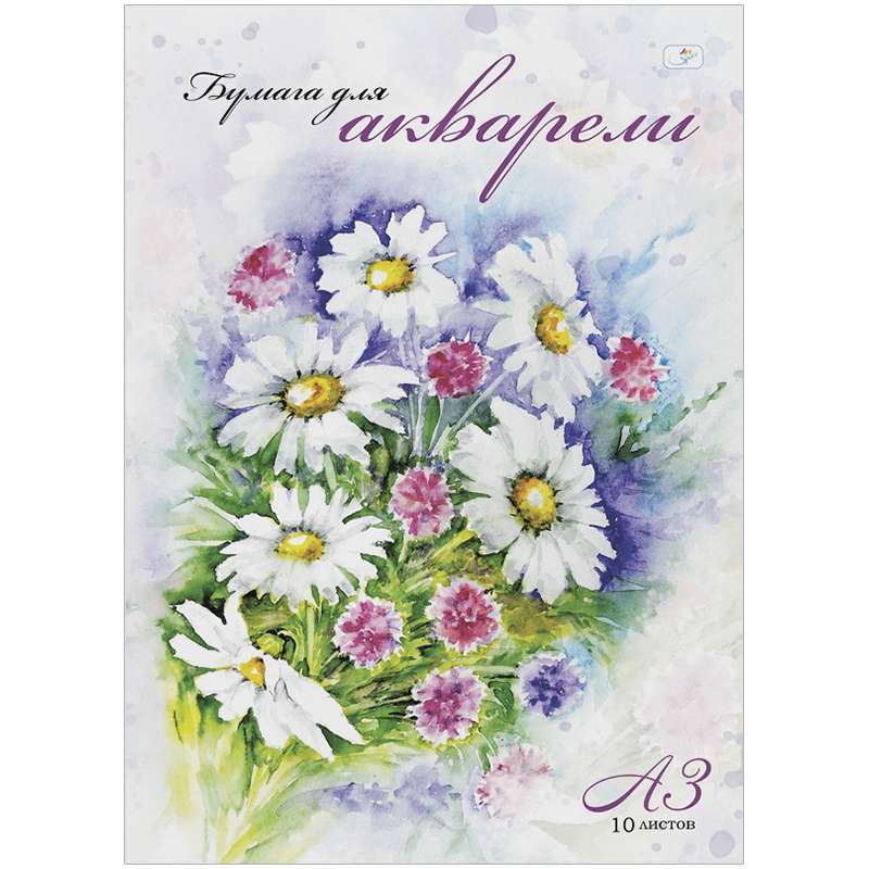 Папка для акварели отлично подходит для рисования. Благодаря специальному составу бумаги, листы при смачивании не деформируются, сохраняя форму. В наборе 10 листов. Формат А3.Папка для акварели 10л. А3 "Ромашки", блок рис.бум. 180г/м2