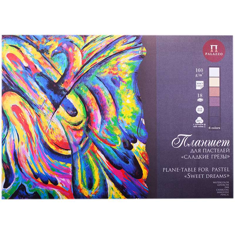 Замечательно подходит для художественных техник, таких как пастель, масляная пастель, мел, карандаш или уголь, сангина. Планшет состоит из 18 листов и 6 цветов пастельной бумаги с жесткой подложкой из переплетного картона. Внутренний блок для удобства проклеен с 2-х сторон по корешку. Бумага внутреннего блока имеет плотность 160 г/м2, cостоит из 40 % хлопкового волокна и имеет тиснение "холст" с одной стороны как все импортные аналоги, предназначенные для пастельных работ. Каждое изделие упаковано в термоусадочную пленку.ФорПланшет для пастелей 18л. А2 "Сладкие грезы", 160г/м2, 6 цветов, "Холст"
