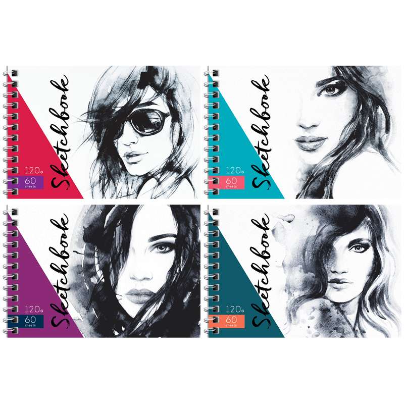 Блокнот для набросков, эскизов, зарисовок в различных видах техники рисования: карандашом, сангиной, соусом, углем, пастелью и тушью. Состоит из рисовальной бумаги (не офсет!!!) белого цвета, плотностью 120г/м2, пружина слева и имеет основание из жесткого картона для удобства рисования.Скетчбук-блокнот для эскизов и зарисовок 60л. А6 на гребне "Fashion style", 120гр/м2