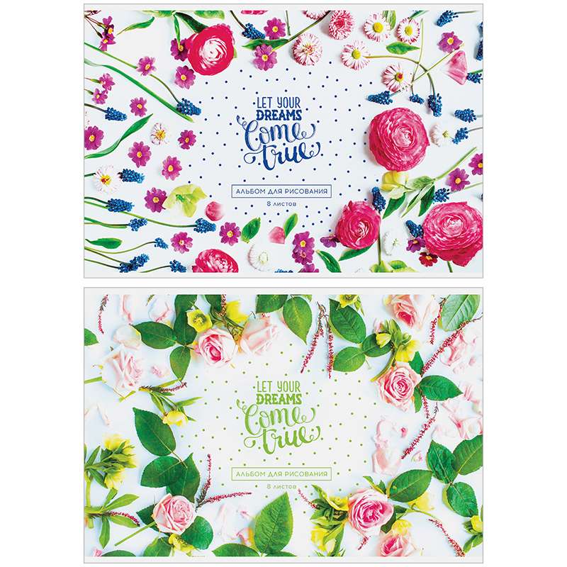 Альбом для рисования формата А4 в обложке из офсетной бумаги. Внутренний блок из 8 листов офсетной бумаги на скобе. Плотность бумаги — 100 г/кв.м, соответствует Техническому регламенту «О безопасности продукции, предназначенной для детей и подростков». Подходит для рисования различными типами красок, фломастерами, цветными и чернографитными карандашами, гелевыми ручками. Отделка обложки – водный лак.Альбом для рисования 08л. А4 на скрепке "Цветы. Твои мечты", обложка-офсет