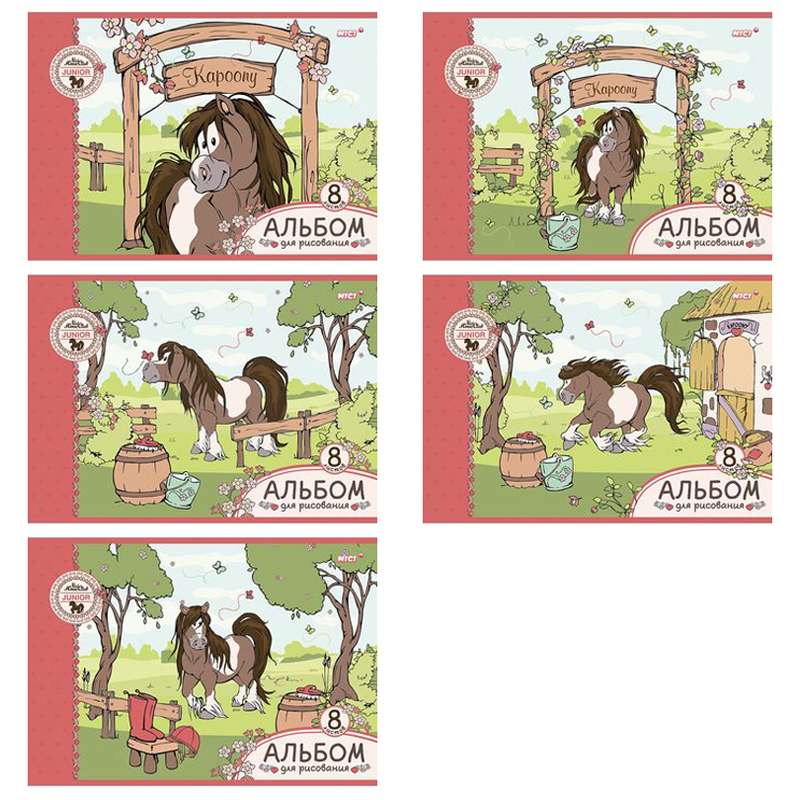 Формат А4. Вид крепления -скрепка. Обложка -мелованный картон. Внутренний блок -офсетный, 100 г/м2.Альбом для рисования 08л., А4, на скрепке Hatber "Мой маленький пони" (NICI)