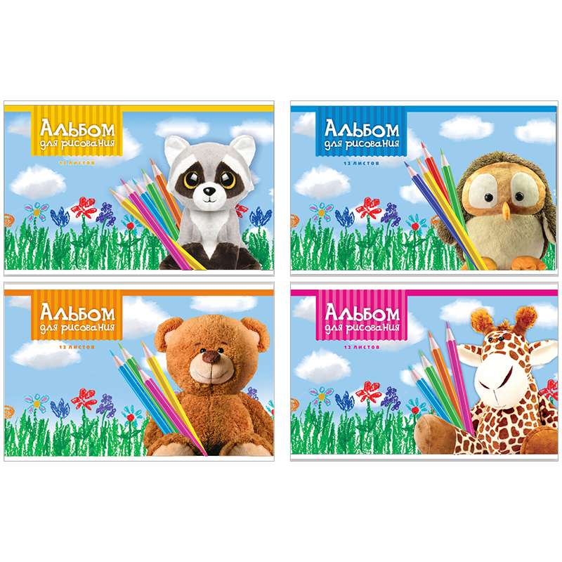 Формат А4. Вид крепления -скрепка. Обложка -мелованный картон. Внутренний блок -офсетный 100 гр/м2Альбом для рисования 08л. А4 на скрепке "Плюшевые игрушки"