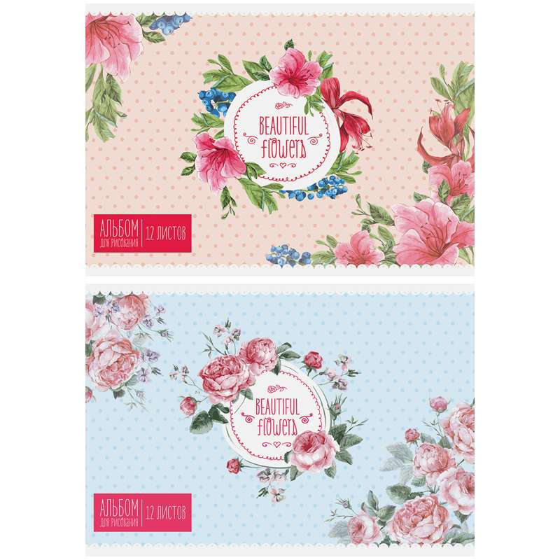 Альбом для рисования формата А4 в обложке из импортного мелованного картона. Внутренний блок из 12 листов офсетной бумаги на скобе. Плотность бумаги — 100 г/кв.м, соответствует Техническому регламенту «О безопасности продукции, предназначенной для детей и подростков». Подходит для рисования различными типами красок, фломастерами, цветными и чернографитными карандашами, гелевыми ручками.Альбом для рисования 12л. А4 на скрепке "Цветы. Beautiful flowers"