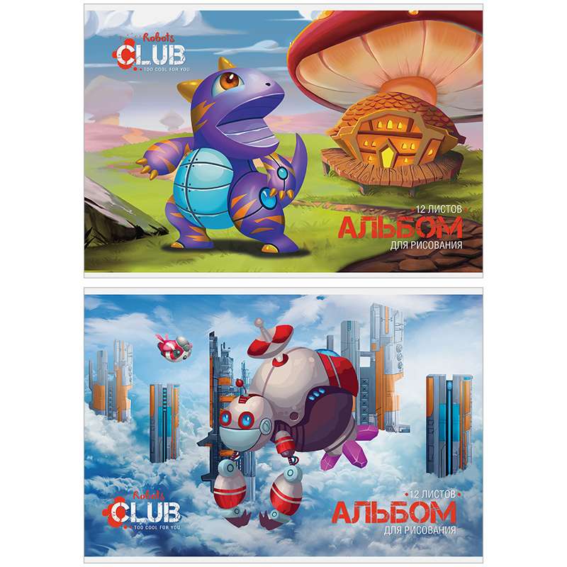 Альбом для рисования формата А4 в обложке из офсетной бумаги. Внутренний блок из 12 листов офсетной бумаги на скобе. Плотность бумаги — 100 г/кв.м, соответствует Техническому регламенту «О безопасности продукции, предназначенной для детей и подростков». Подходит для рисования различными типами красок, фломастерами, цветными и чернографитными карандашами, гелевыми ручками. Отделка обложки – водный лак.Альбом для рисования 12л. А4 на скрепке "Мультяшки. Robots club", обложка -офсет