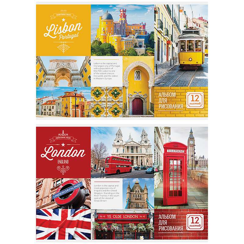 Альбом для рисования формата А4 в обложке из импортного мелованного картона. Внутренний блок из 12 листов офсетной бумаги на скобе. Плотность бумаги — 100 г/кв.м, соответствует Техническому регламенту «О безопасности продукции, предназначенной для детей и подростков». Подходит для рисования различными типами красок, фломастерами, цветными и чернографитными карандашами, гелевыми ручками.Альбом для рисования 12л. А4 на скрепке "Путешествия. Яркая мозаика", эконом