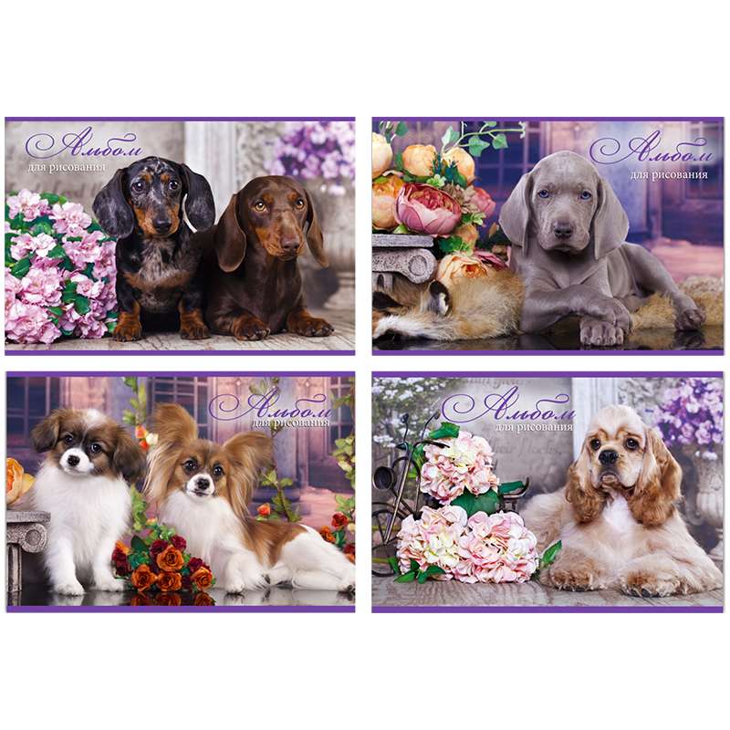 Формат А4. Вид крепления -скрепка. Обложка -мелованный картон. Внутренний блок -офсетный, 100 гр/м2. Белизна внутреннего блока -92%.Альбом для рисования 12л. А4 на скрепке "Ретро - собачки", эконом