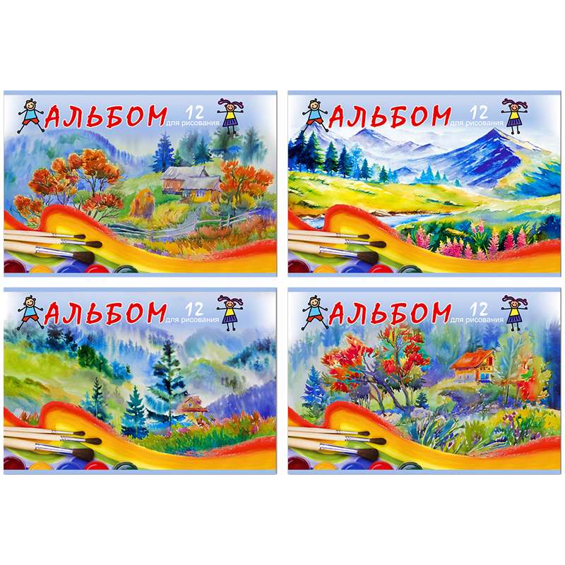 Формат А4. Вид крепления -скрепка. Обложка -мелованный картон. Внутренний блок -офсетный, 100 гр/м2. Белизна внутреннего блока -92%.Альбом для рисования 12л. А4 на скрепке "Воздушная акварель", эконом