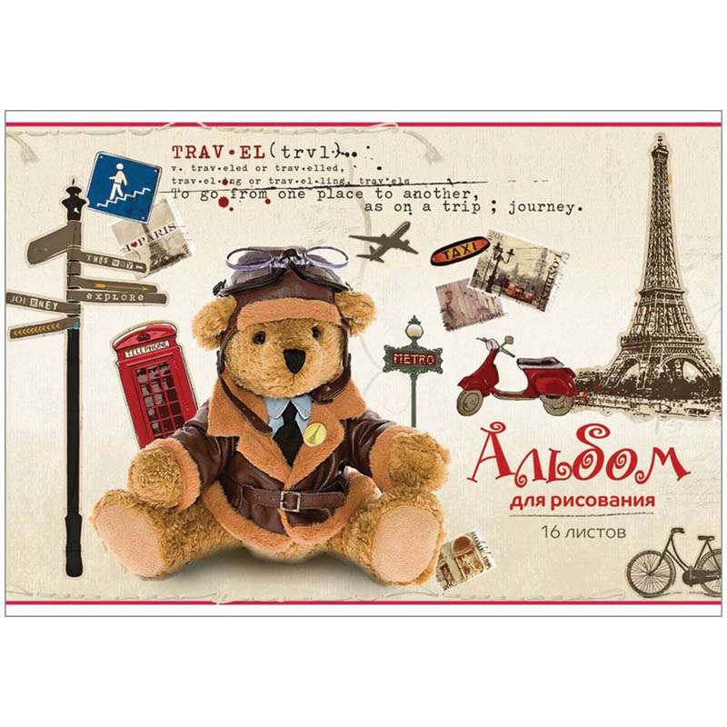 Внутренний блок – офсет 100 г/м². Обложка – мелованный картон, ВД-лак. Объем блока – 16 л. Формат А4.Альбом для рисования 16л. А4 на скрепке "Игрушки", блок 100 г/м2, ВД-лак