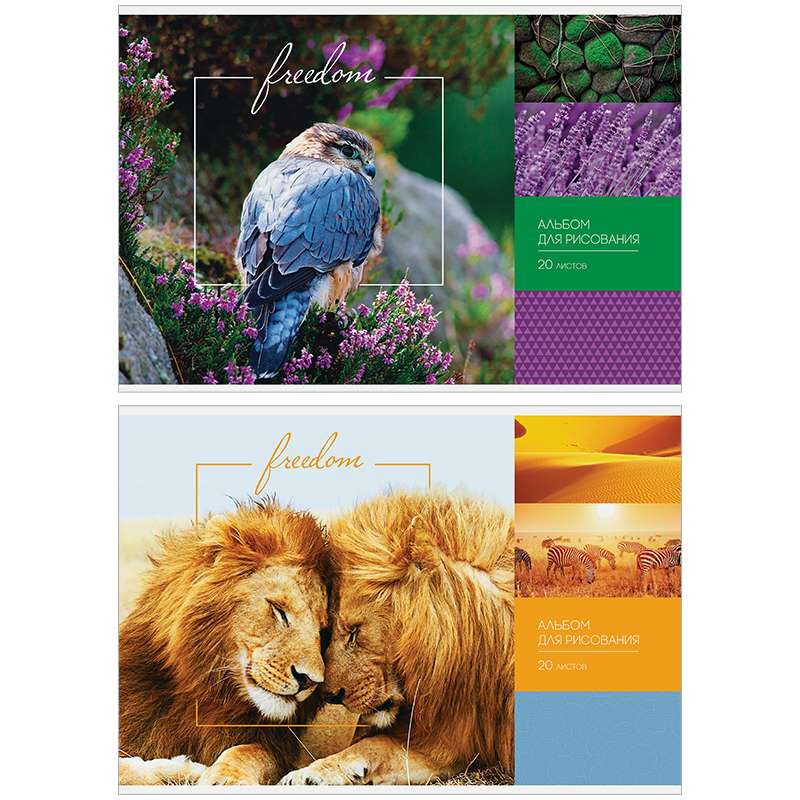 Альбом для рисования формата А4 в обложке из импортного мелованного картона. Внутренний блок из 20 листов офсетной бумаги на скобе. Плотность бумаги — 100 г/кв.м, соответствует Техническому регламенту «О безопасности продукции, предназначенной для детей и подростков». Подходит для рисования различными типами красок, фломастерами, цветными и чернографитными карандашами, гелевыми ручками. Отделка обложки – сплошной глянцевый УФ-лак.Альбом для рисования 20л. А4 на скрепке "Природа. Freedom", глянцевый уф-лак
