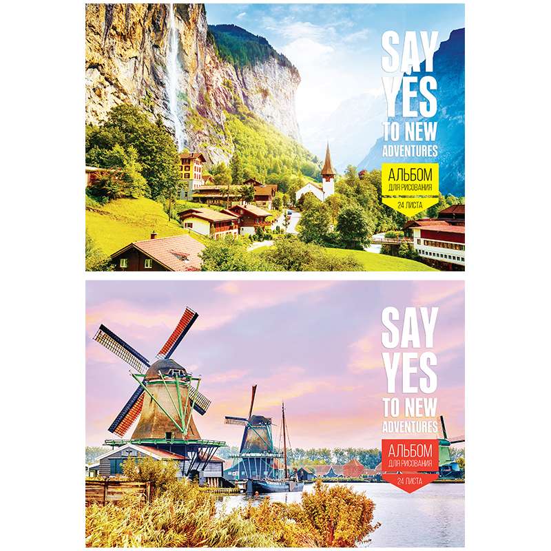 Альбом для рисования формата А4 в обложке из мелованного картона. Внутренний блок из 24 листов офсетной бумаги на склейке. Плотность бумаги — 100 г/кв.м, соответствует Техническому регламенту «О безопасности продукции, предназначенной для детей и подростков». Подходит для рисования различными типами красок, фломастерами, цветными и чернографитными карандашами, гелевыми ручками. Отделка обложки – водный лак.Альбом для рисования 24л. А4 на склейке "Путешествия. New adventures"