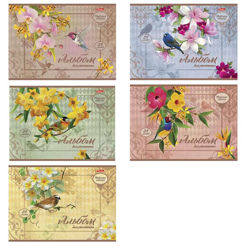 Формат А4. Вид крепления -скрепка. Обложка -мелованнаый картон. Внутренний блок -офсетный, 100 г/м2Альбом для рисования 24л., А4, на скрепке Hatber "Райские птички"